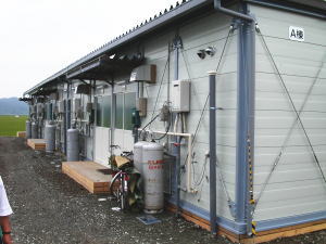 | 南郷町の震災ゴミ置き場。町の運動場が当てられていました。家屋の処理だけで2億〜3億はかかるそうです。このまま廃材で処理できないので、チップにして処理しているそうです。チップにする機械がリースで1日10数万円かかると言うことでした。農作業等がありまだまだ今の時点で半分ぐらいの量だそうで、今年いっぱいはかかるとのこと。各人が運び込むのも業者の順番待ちだそうです。 | |