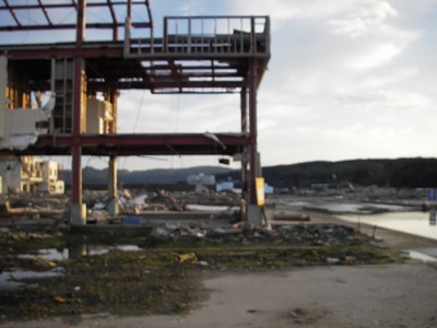 10月で7ヶ月たった割にはまだまだという感じでした。確かに少しずつがれきの片付けは進んでいるようですが、海岸の堤防が壊れたままで地盤が沈下しているため、高潮や上げ潮の時に道路まで水が浸水してくるのはそのままです。そのためか、その当たりのがれきの撤去が進んでいないように見えました。