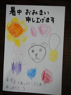 今回はあさひ幼稚園は夏休みと言うことで、日程が合わずお邪魔することはできませんでしたが、暑中見舞いのはがきが届き感激しました。