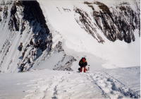 | C5よりノースコル・チャンツエ | C6テント内より頂上。 高畠(左)と田中 |