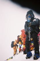 第2ステップ下の順番待ち、 手前シェルパ・後ろ韓国隊 |