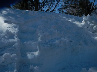 | 10人はいる大きな雪洞作り | 入り口にはシーザーも |