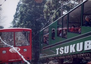 | 下山時ケーブルカーを見られる場所があり、丁度下から(左)と上から(右)とがすれ違った。 | |
