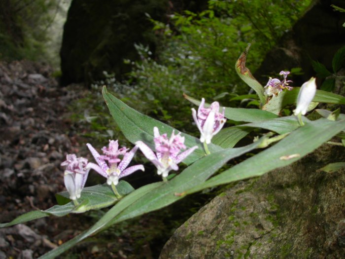 その後は小滝やゴーロが続き、急峻そうな狭い滝が続く。ほとんど花はなかったけど、この辺にはホトトギスが結構咲いていた。