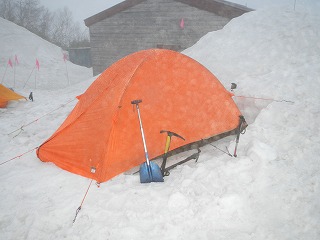 3時に起きて外の様子を見る。入山前の天気予報では4日は天気が崩れる予報。頂上付近は雪が50cmは降るかもとの予報だった。